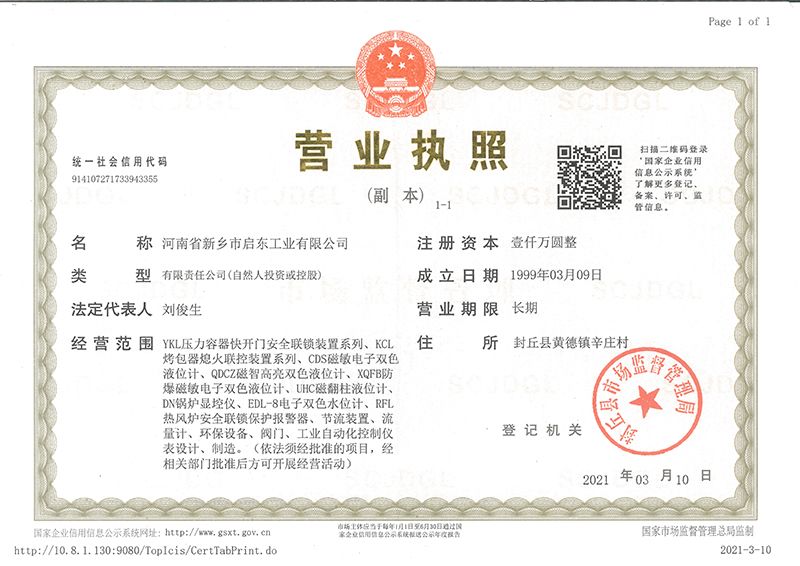 河南省新鄉市啟東工業有限公司始建于1987年,是專注研發、生產自動化儀器儀表(主要與壓力容器、鍋爐等容器配套使用)的廠家。主要產品有液位計(磁敏雙色型、磁翻柱型等)系列、烤包器熄火聯控裝置系列、壓力容器快開門安全聯鎖保護裝置系列、鍋爐報警器系列。二十多年來,公司產品暢銷國內并遠銷俄羅斯、蒙古與東南亞,深得廣大用戶的信賴和好評。我們多年來致力于自動化儀器儀表的研制生產,公司現具有完善的生產、試驗、檢測手段和設備。科技創新、誠信服務,是我們不變的經營理念,我們將以強有力的技術支持及售后竭誠為客戶提供良好的服務?! ?012年我公司成功研發了KCL系列烤包器熄火聯控裝置,并于2013年2月2日榮獲中華人民共和國國家知識產權局辦法的《實用新型**證書》<**號:2021202257735>該產品廣泛應用于唐鋼等大型鋼鐵企業,為烤包器安全作業提供了有力的保障。  2002年我公司成功研發磁敏電子雙色液位計獨特的高亮度LED紅綠雙色顯示,獲得了專家的首肯和用戶的一致好評。在此基礎上我公司研發人員十年磨一劍,致力于XQFB-1防爆型磁敏雙色液位計的研發,于2013年12月27日由國家防爆電器產品質量監督檢驗中心檢驗合格并頒發防爆合格證書<編號:cnex19.0883>。該產品性能得到了充分的發揮,廣泛應用于含有Ⅱ類A·B級T1-T4組可燃氣體或蒸汽與空氣混合形成的爆炸性混合物的0區、1區危險場所。連接用戶DCS或PLC系統實現遠距離集中顯示和控制,從而實現節能、數字化管理。為用戶增加了一定的經濟效益和社會效益,。2014年公司成功申請了夢潤儀表的logo,新的品牌新的形象,夢潤儀表是啟東的LOGO, 歡迎新老用戶前來洽談合作?! ∥覀円蝗缂韧刈⒅乜蒲械耐度耄瑧{借產品的不斷更新、加大科技含量,進一步拓展市場。我們相信品質成就未來,以過硬質量、優惠價格、完善的售后服務熱忱歡迎廣大客戶來我司視察指導、洽談業務;精誠合作,共創輝煌!